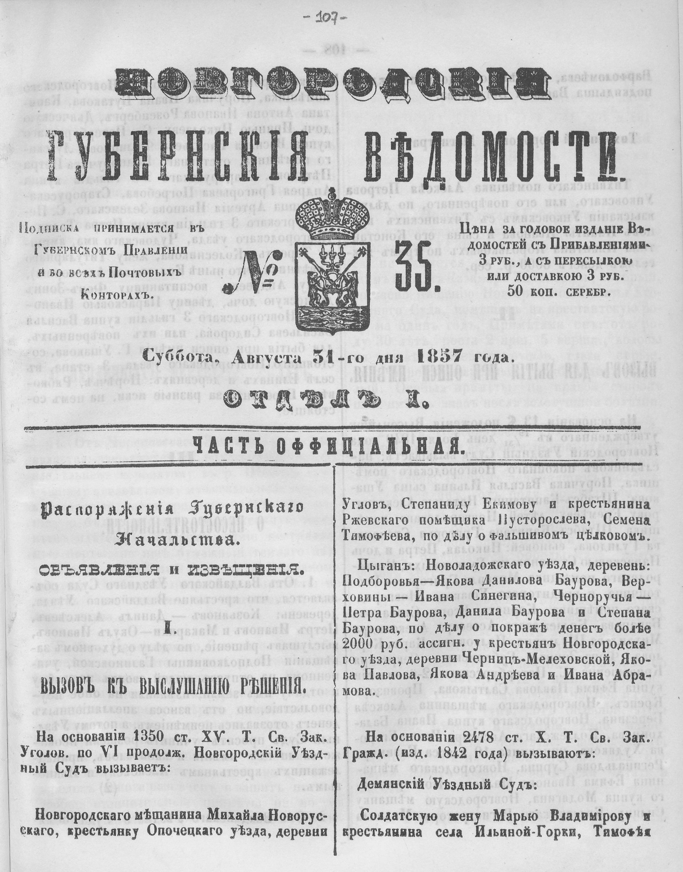 НОВГОРОДСКИЕ ГУБЕРНСКИЕ ВЕДОМОСТИ