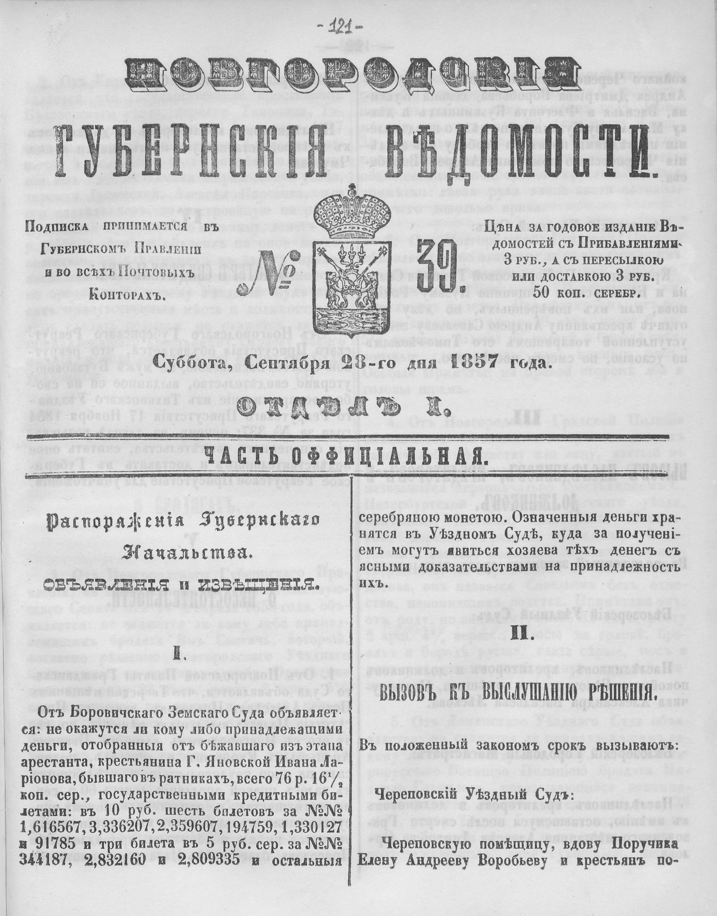 НОВГОРОДСКИЕ ГУБЕРНСКИЕ ВЕДОМОСТИ