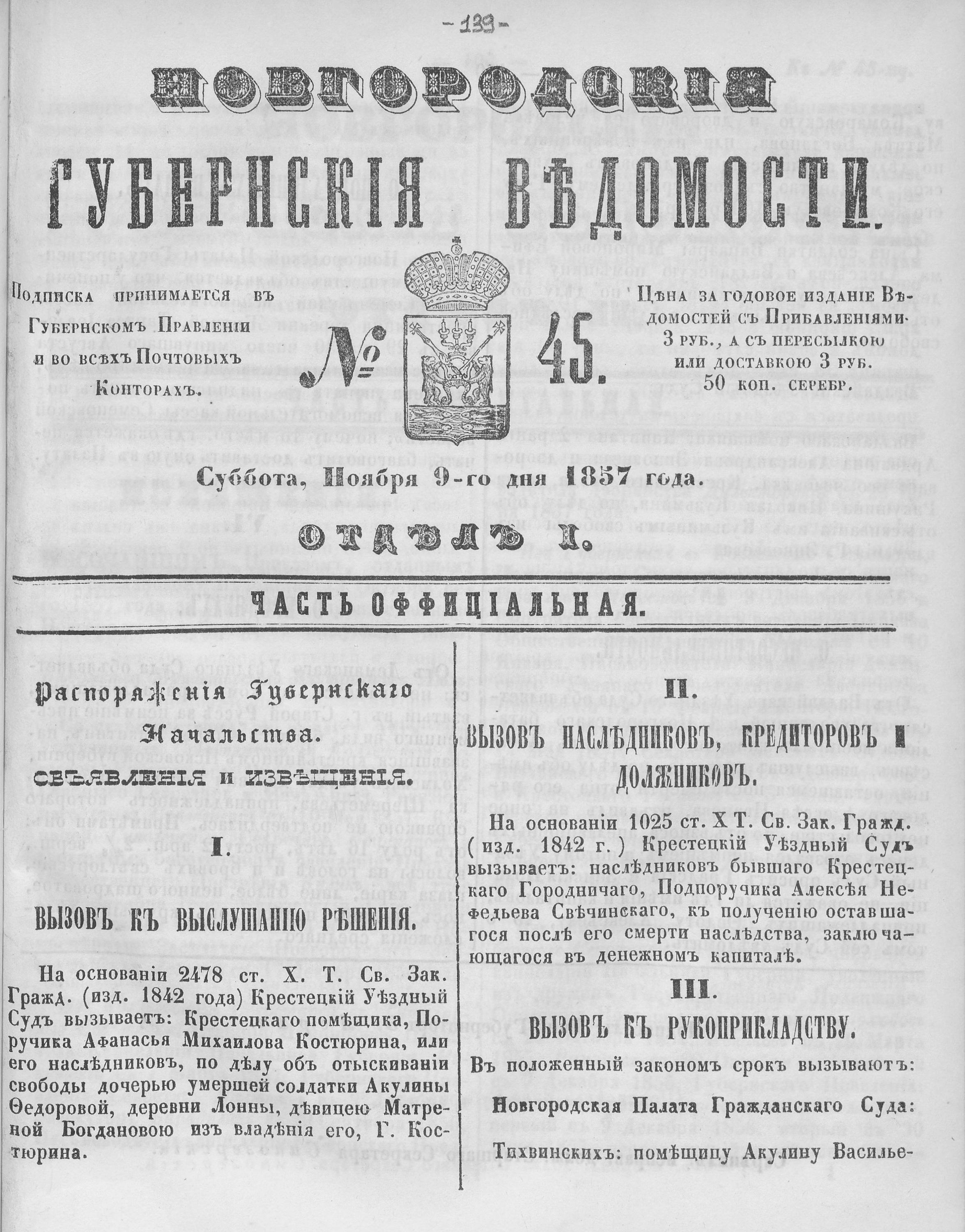 НОВГОРОДСКИЕ ГУБЕРНСКИЕ ВЕДОМОСТИ