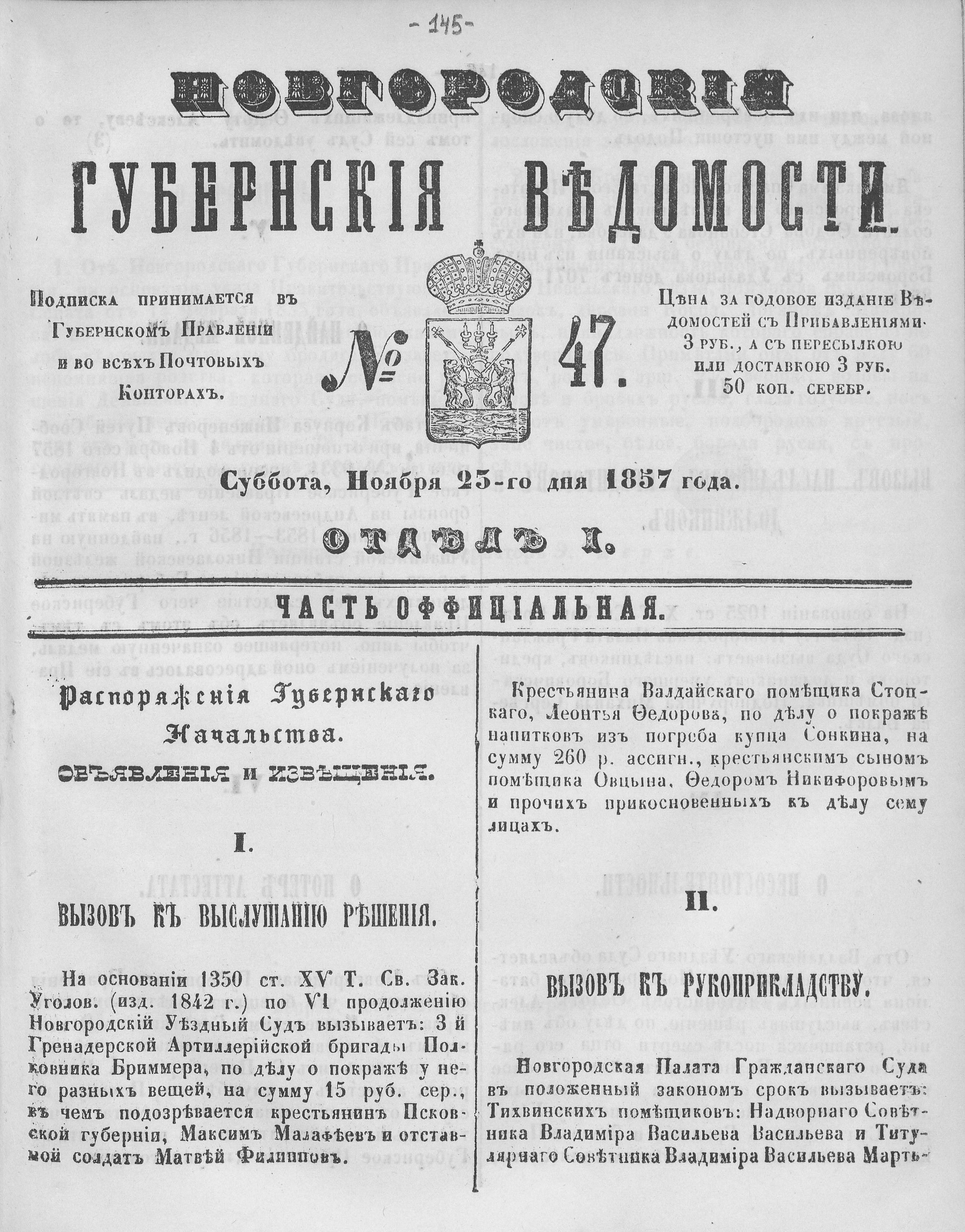 НОВГОРОДСКИЕ ГУБЕРНСКИЕ ВЕДОМОСТИ