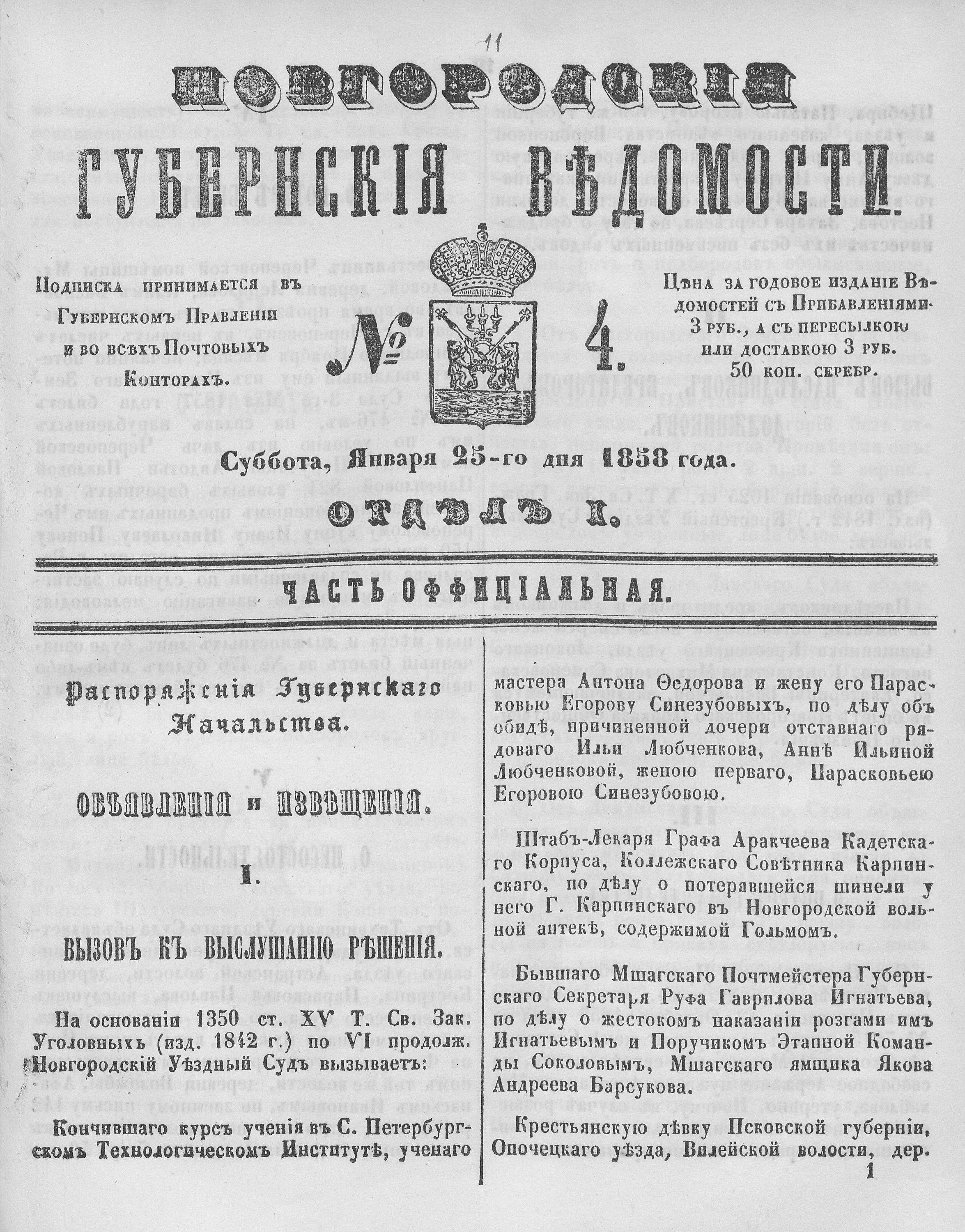 НОВГОРОДСКИЕ ГУБЕРНСКИЕ ВЕДОМОСТИ