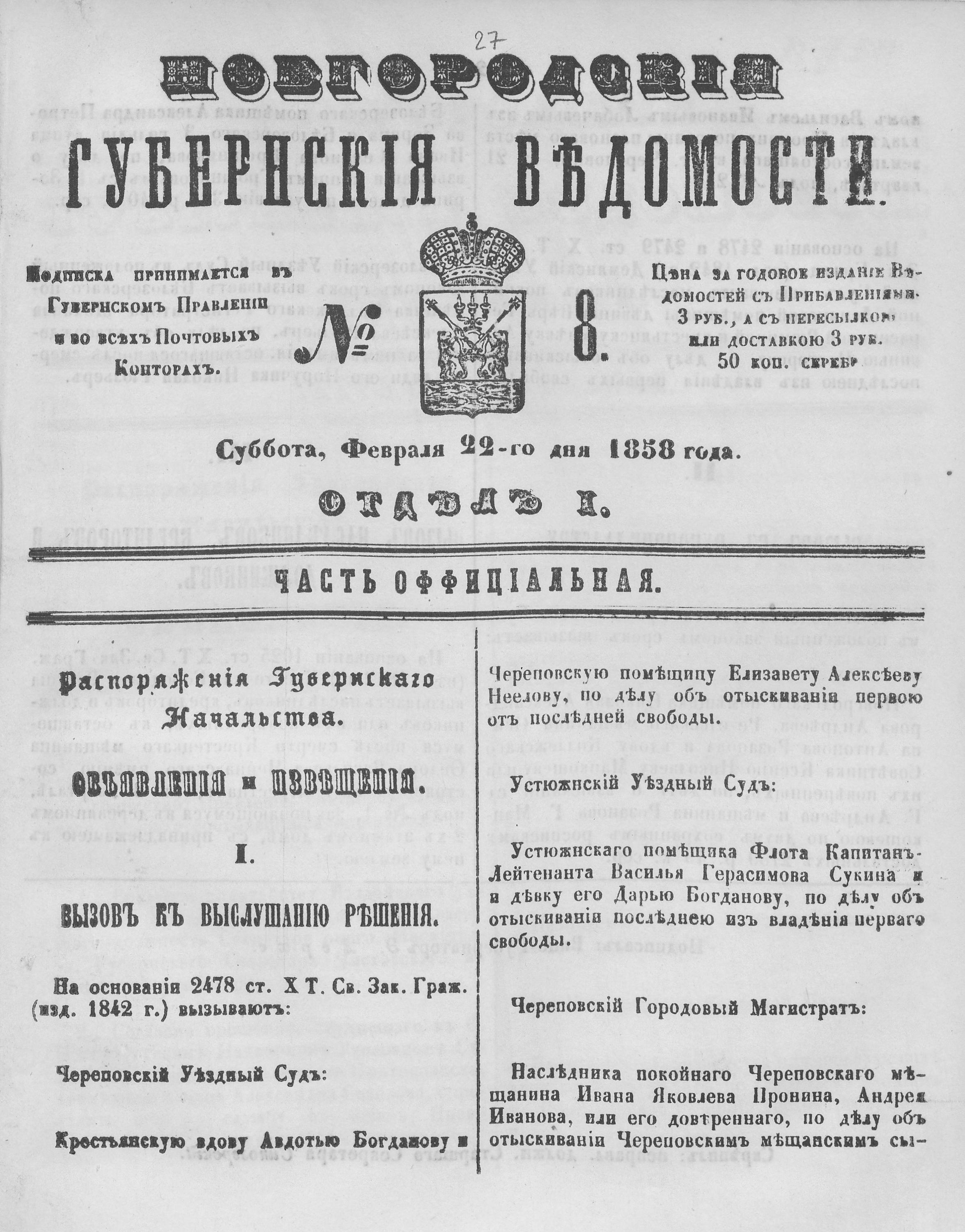 НОВГОРОДСКИЕ ГУБЕРНСКИЕ ВЕДОМОСТИ