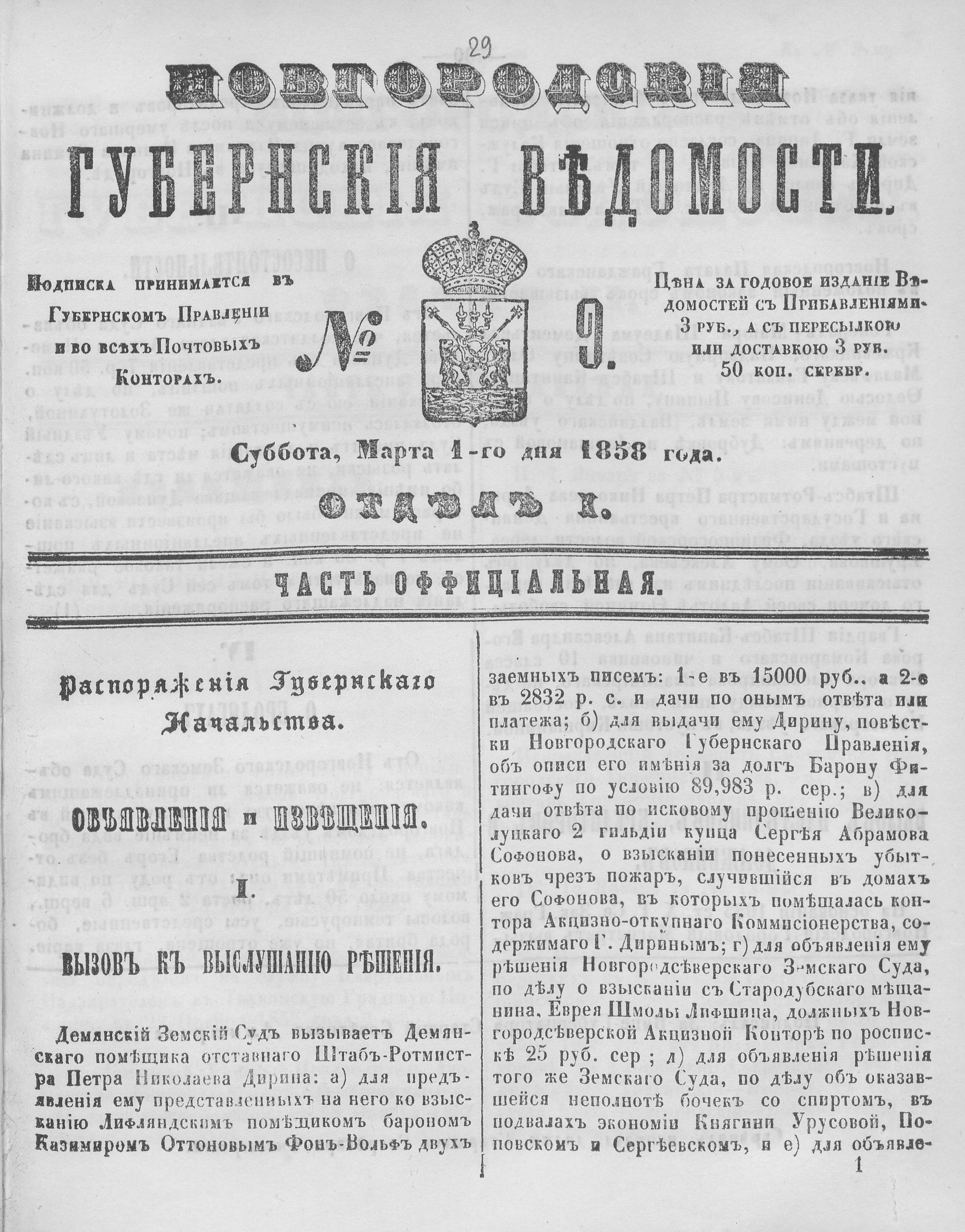 №9, 1 марта 1858 год