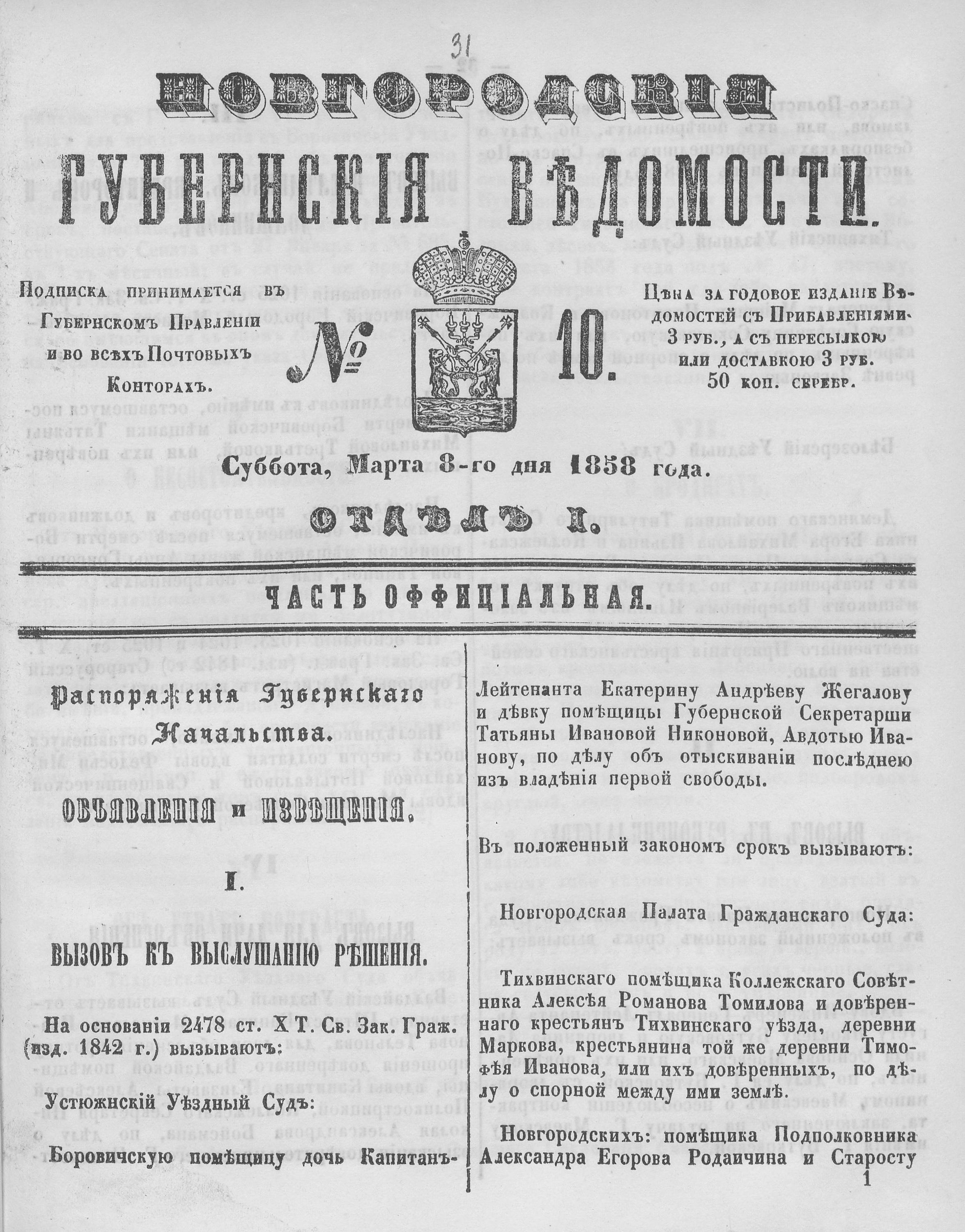 НОВГОРОДСКИЕ ГУБЕРНСКИЕ ВЕДОМОСТИ