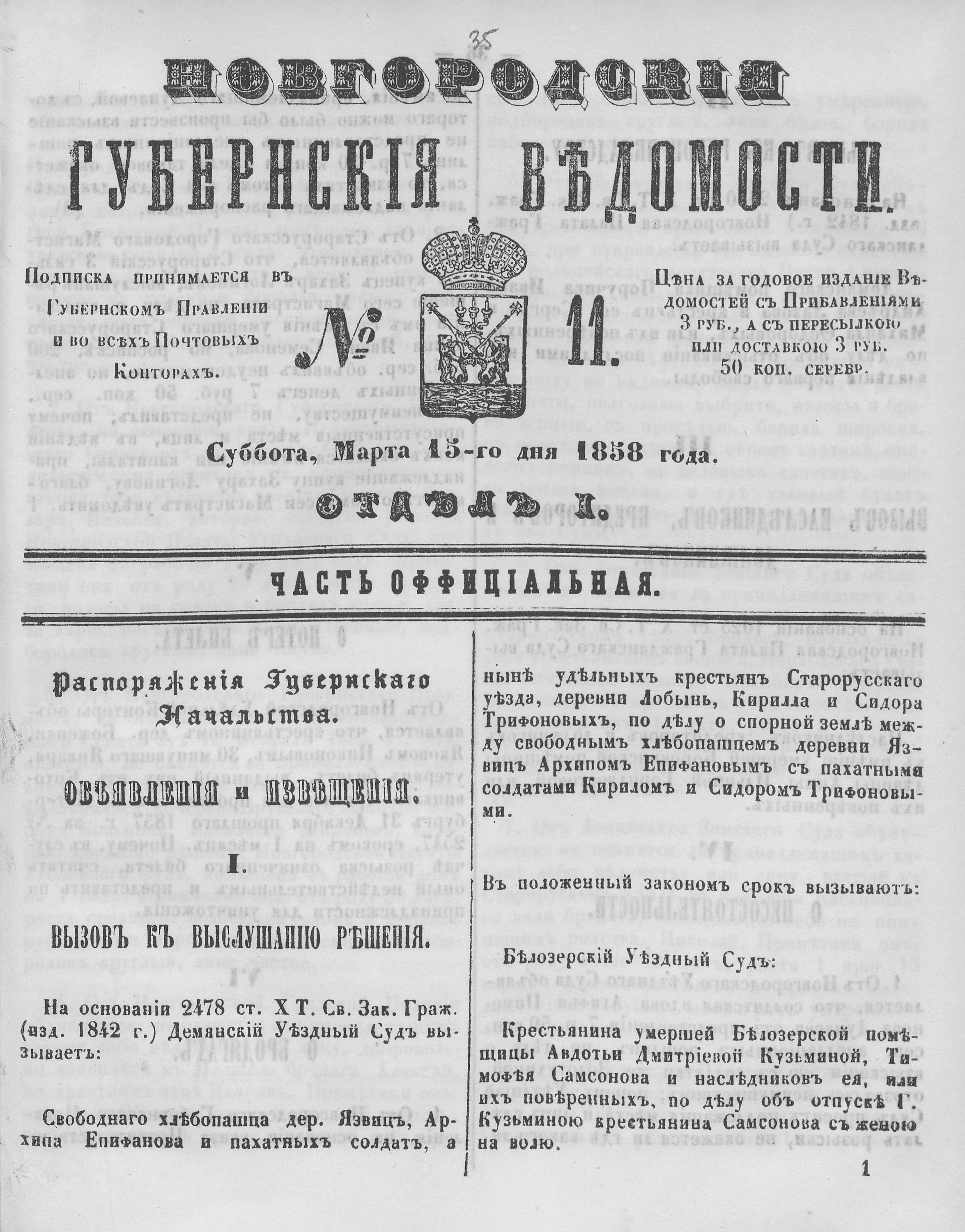 НОВГОРОДСКИЕ ГУБЕРНСКИЕ ВЕДОМОСТИ