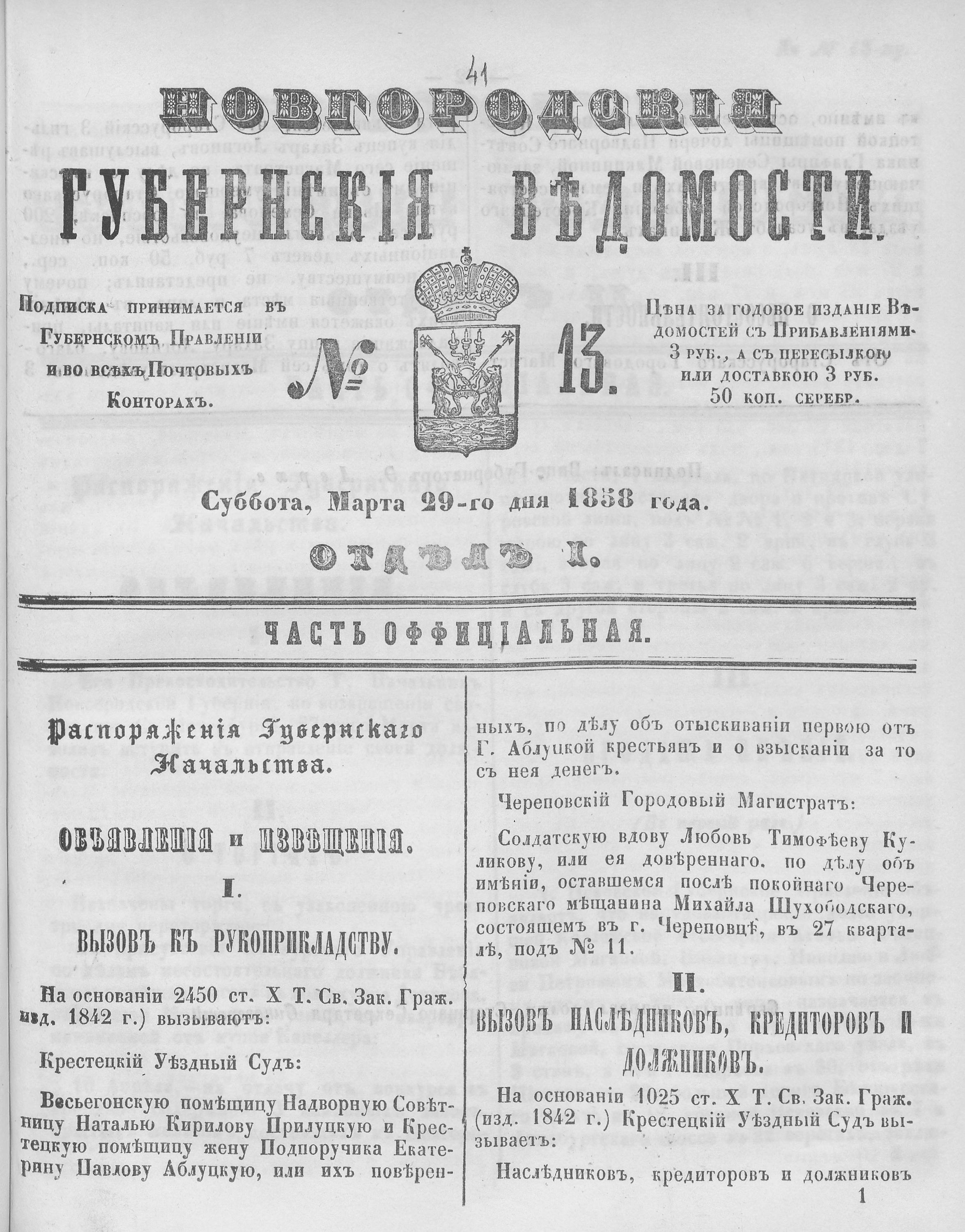 НОВГОРОДСКИЕ ГУБЕРНСКИЕ ВЕДОМОСТИ