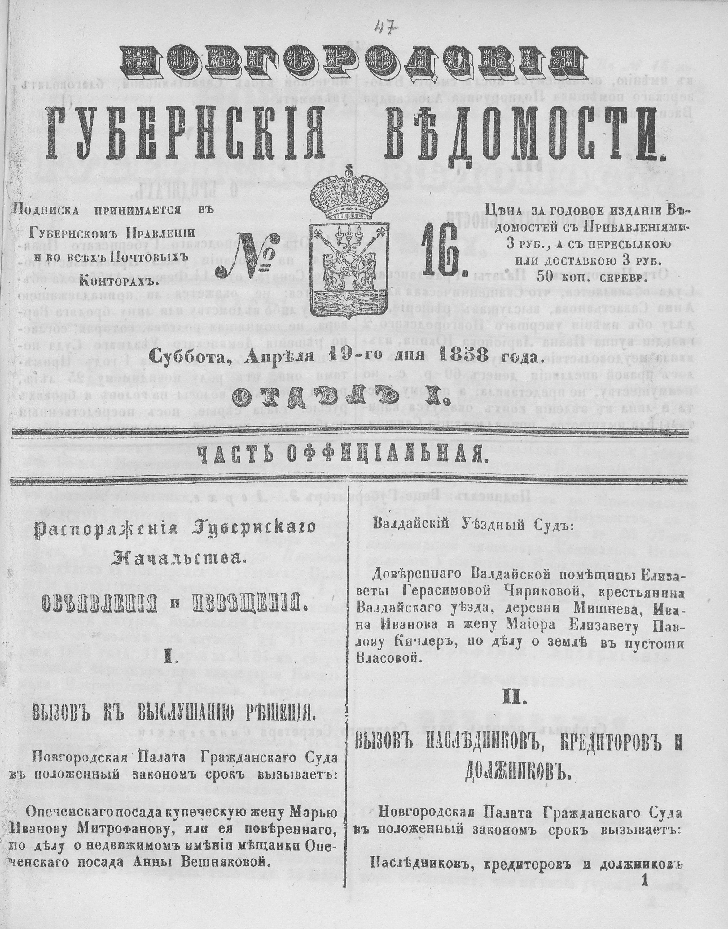 НОВГОРОДСКИЕ ГУБЕРНСКИЕ ВЕДОМОСТИ
