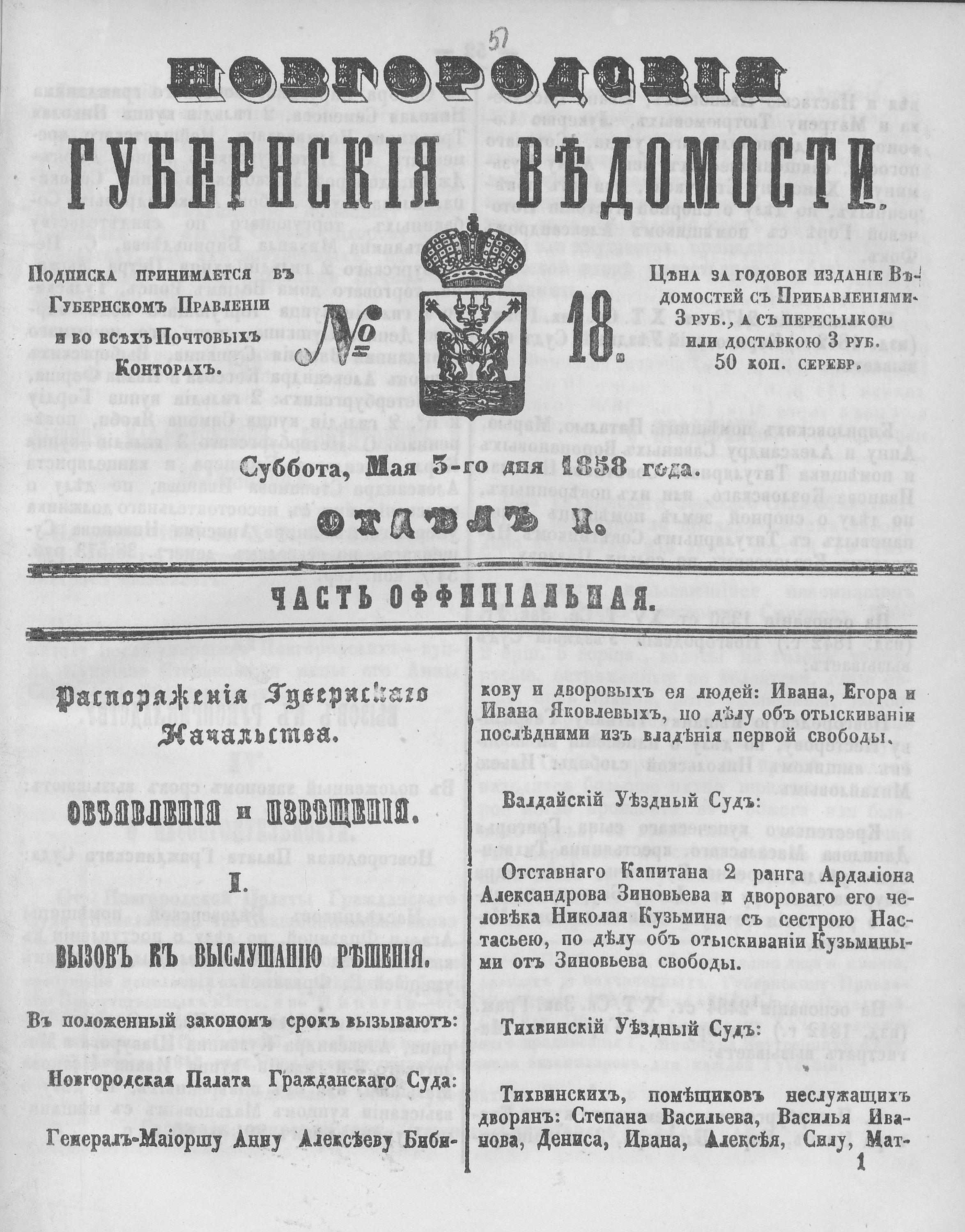 НОВГОРОДСКИЕ ГУБЕРНСКИЕ ВЕДОМОСТИ