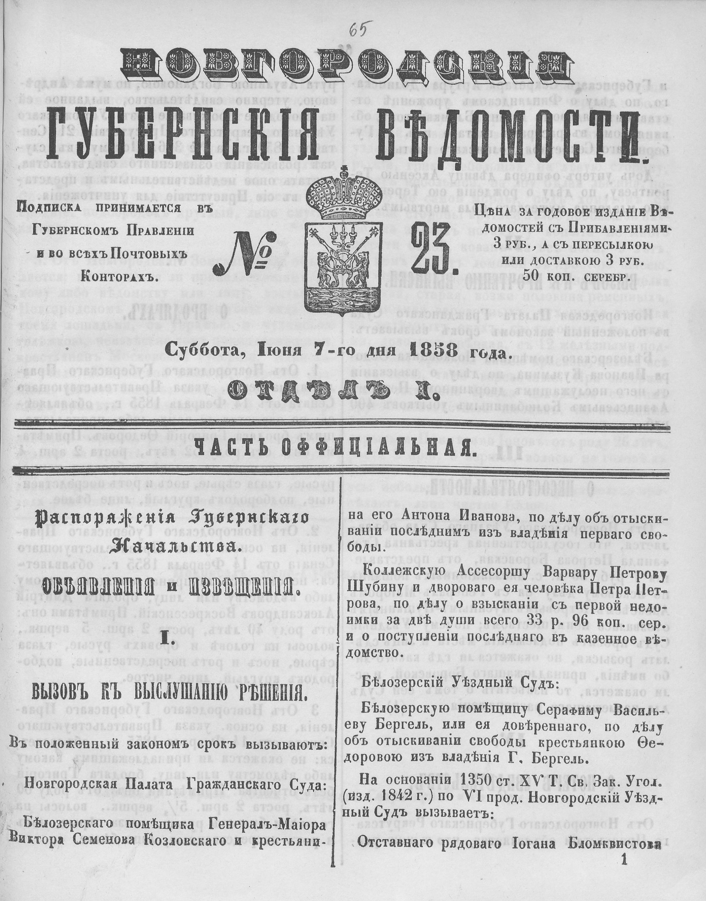 №23, 7 июня 1858 год
