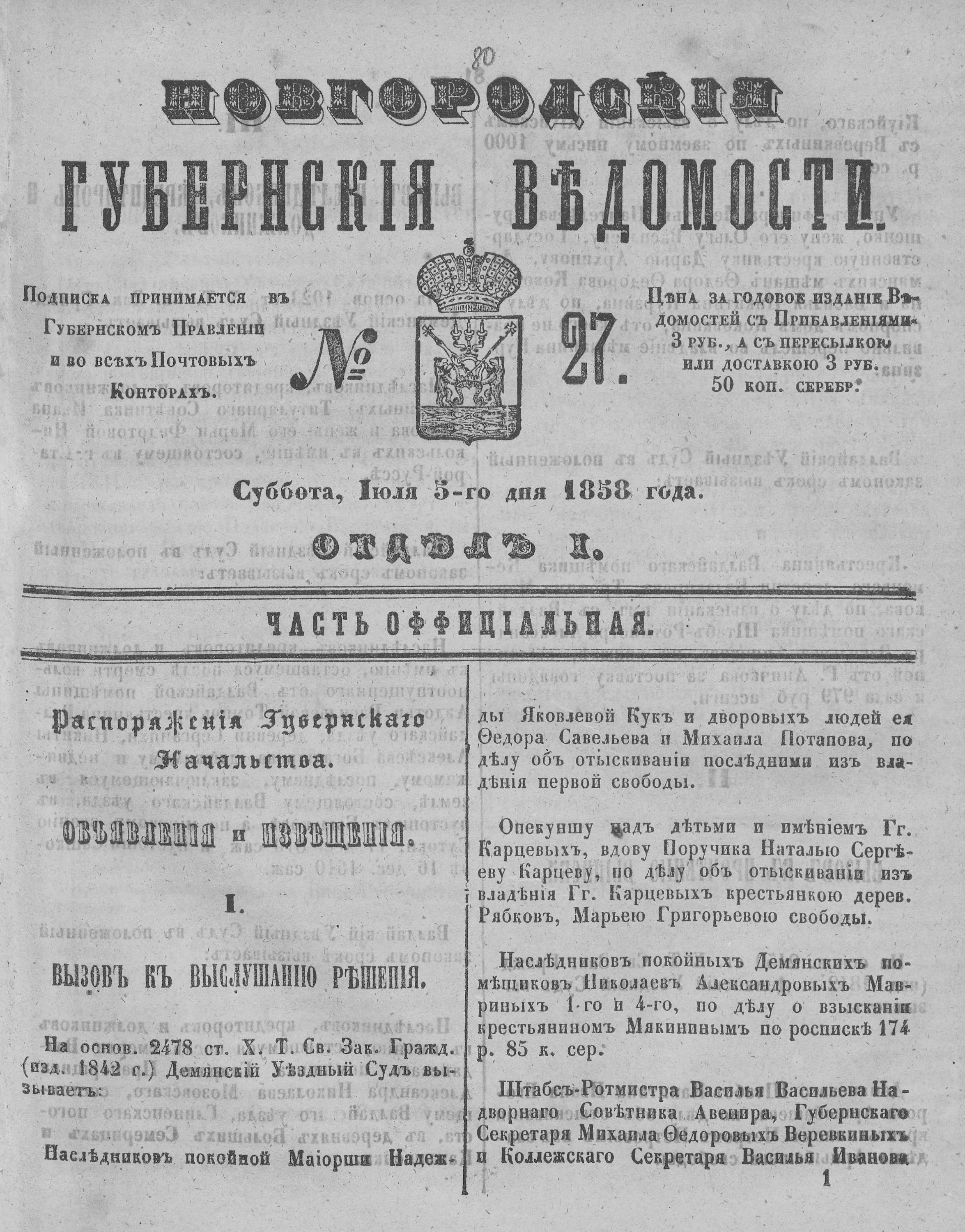 НОВГОРОДСКИЕ ГУБЕРНСКИЕ ВЕДОМОСТИ