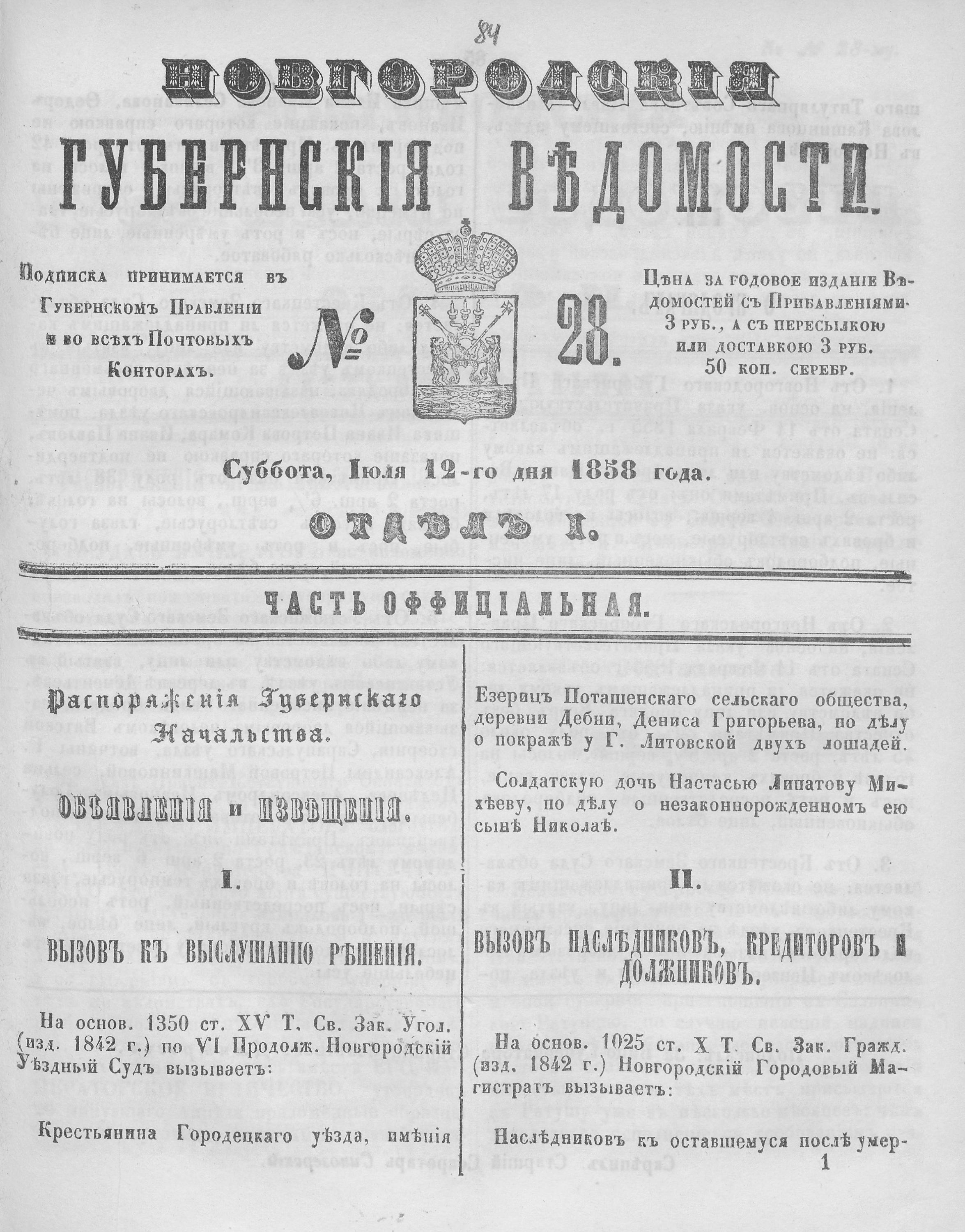НОВГОРОДСКИЕ ГУБЕРНСКИЕ ВЕДОМОСТИ