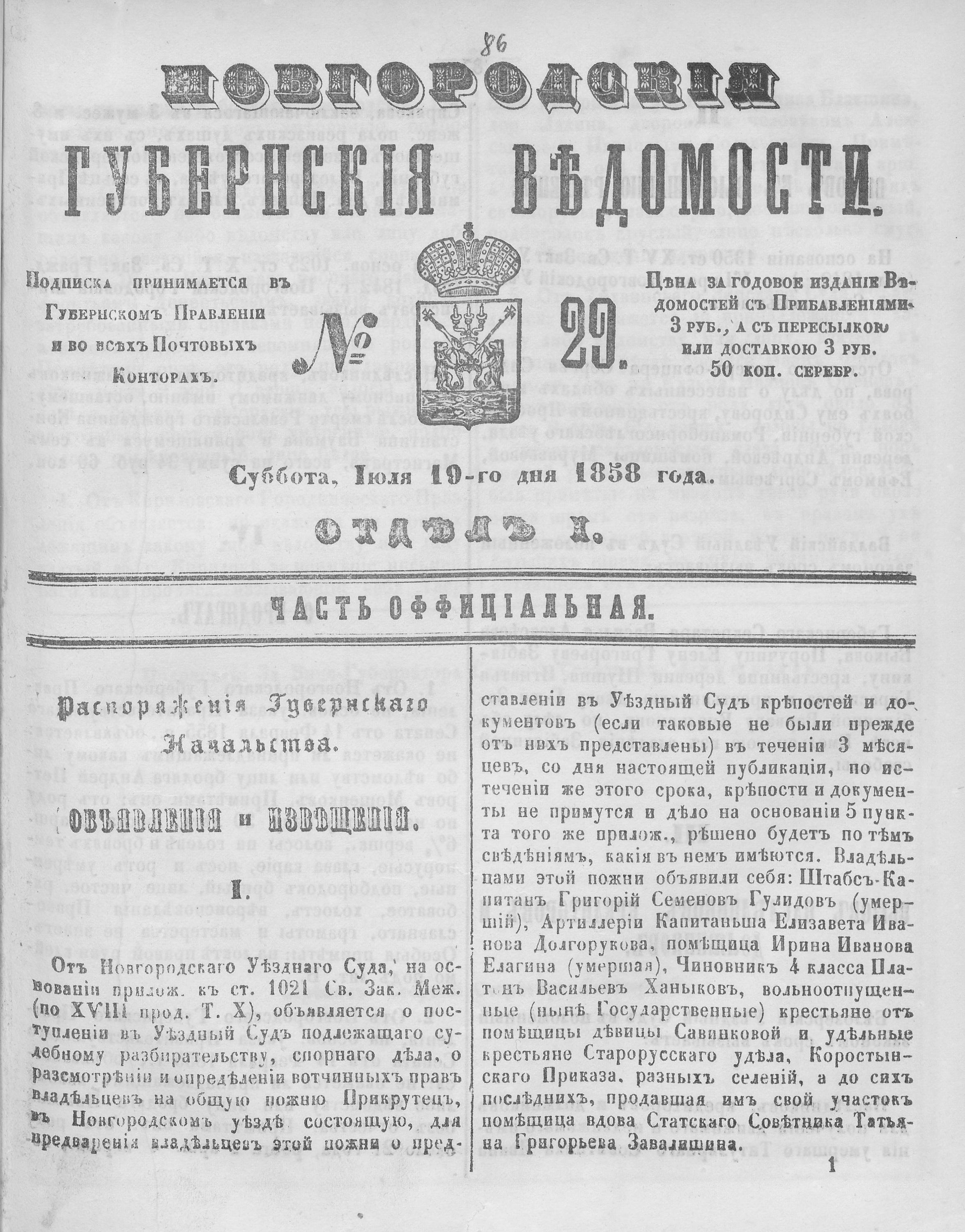 НОВГОРОДСКИЕ ГУБЕРНСКИЕ ВЕДОМОСТИ
