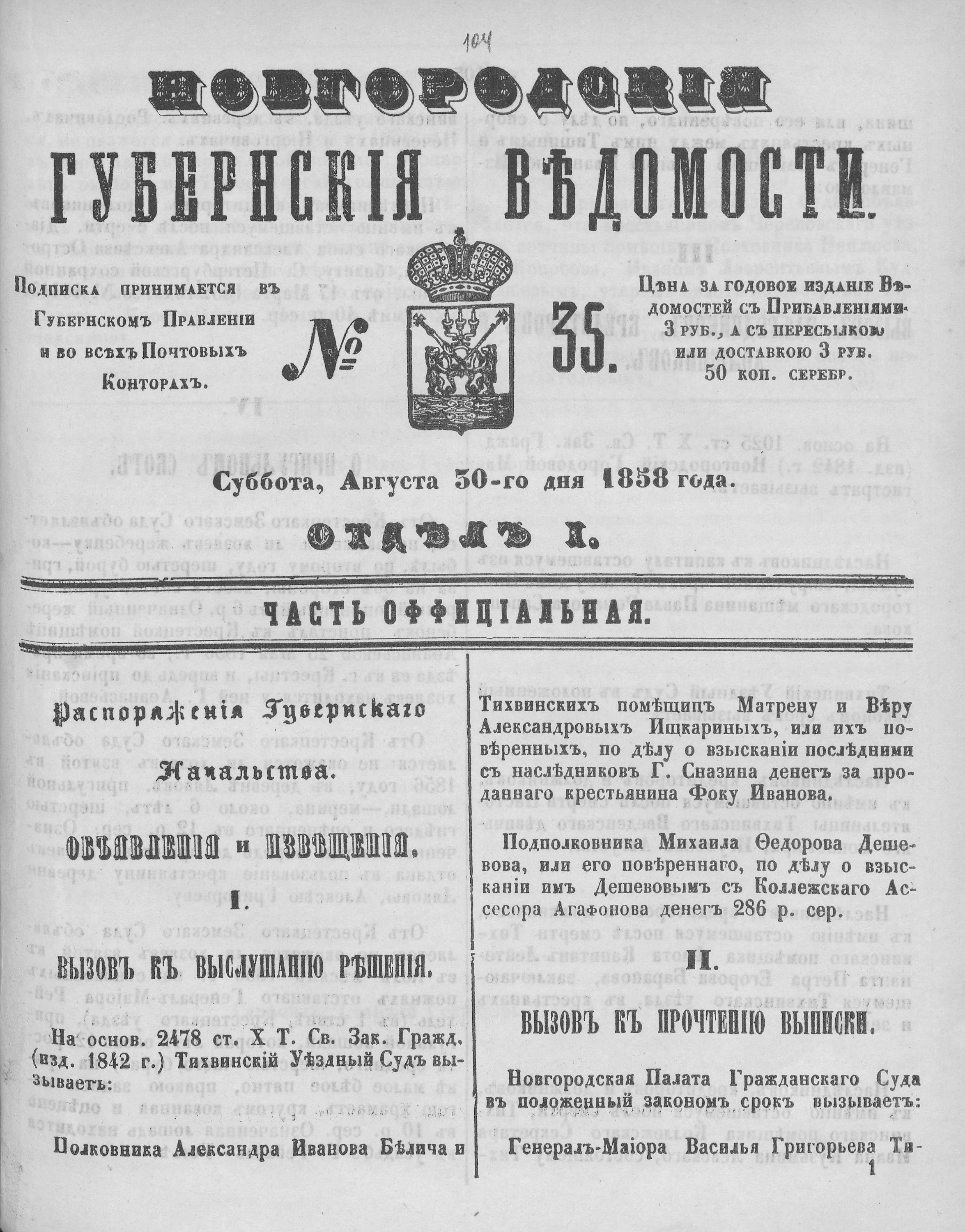 НОВГОРОДСКИЕ ГУБЕРНСКИЕ ВЕДОМОСТИ