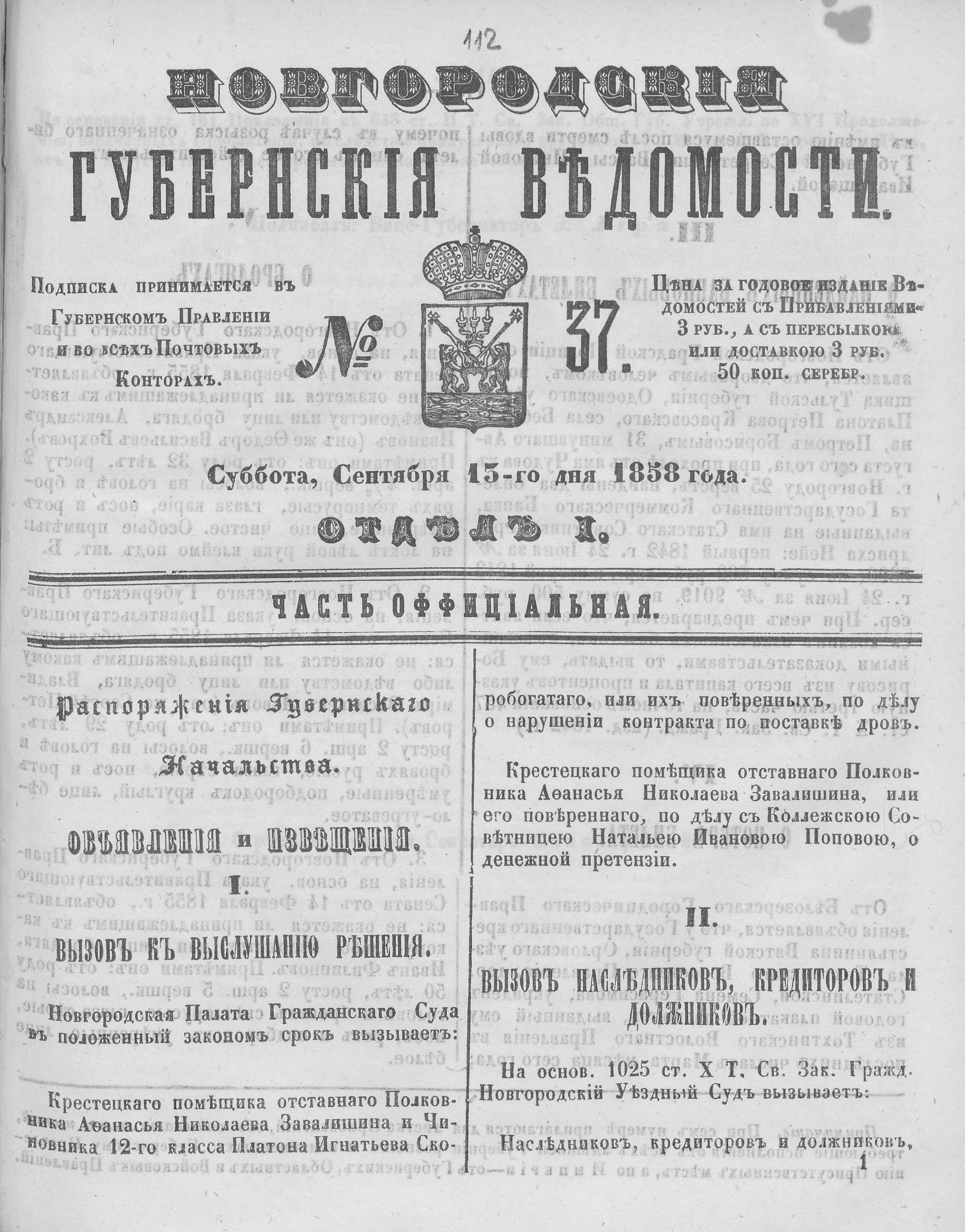 №37, 15 сентября 1858 год
