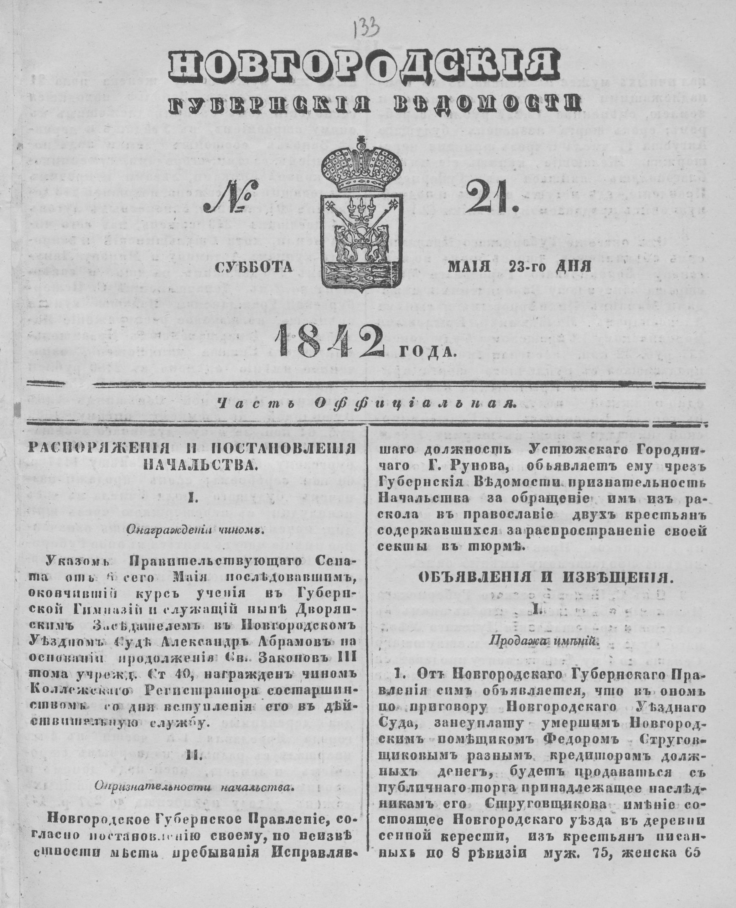 НОВГОРОДСКИЕ ГУБЕРНСКИЕ ВЕДОМОСТИ