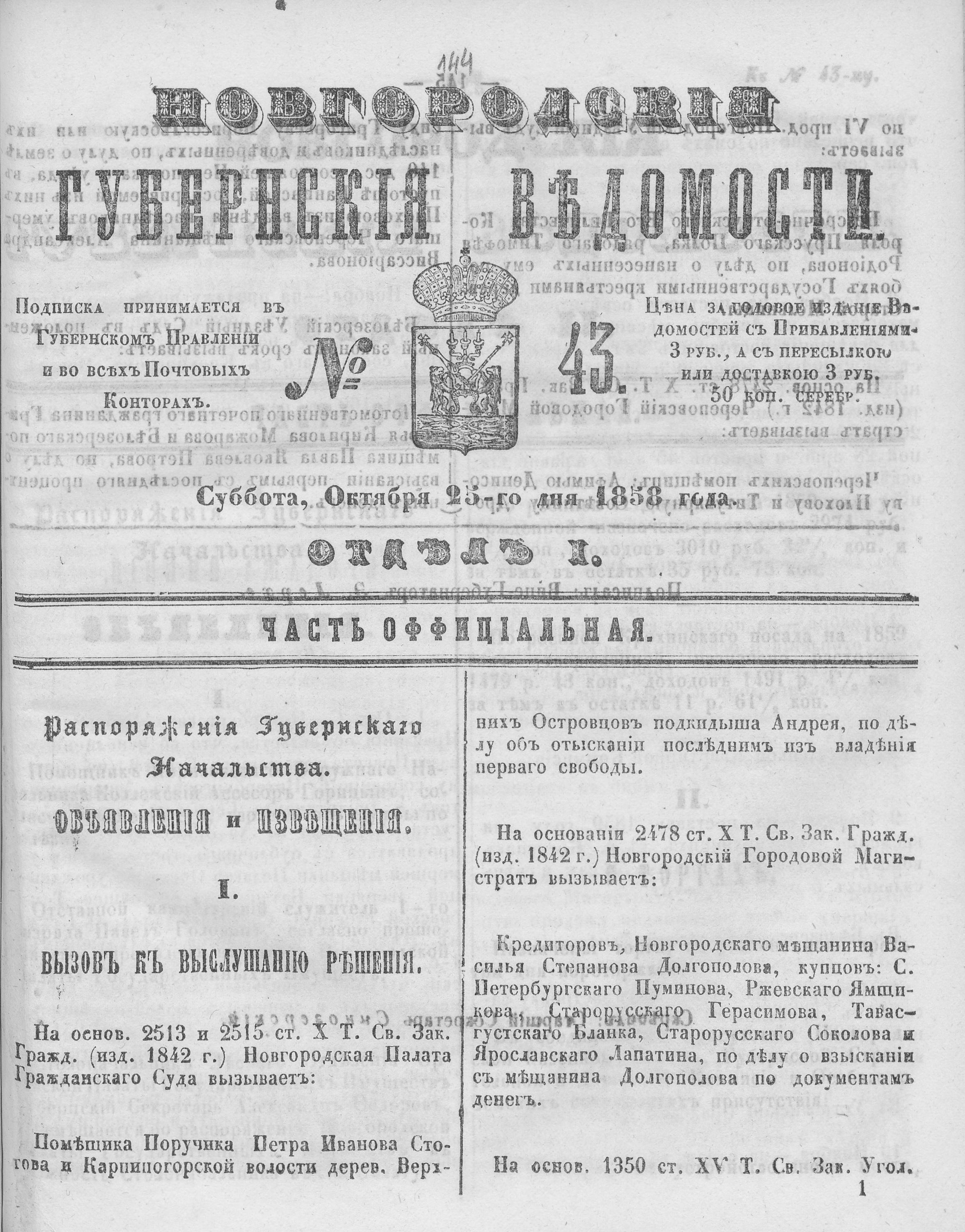 НОВГОРОДСКИЕ ГУБЕРНСКИЕ ВЕДОМОСТИ