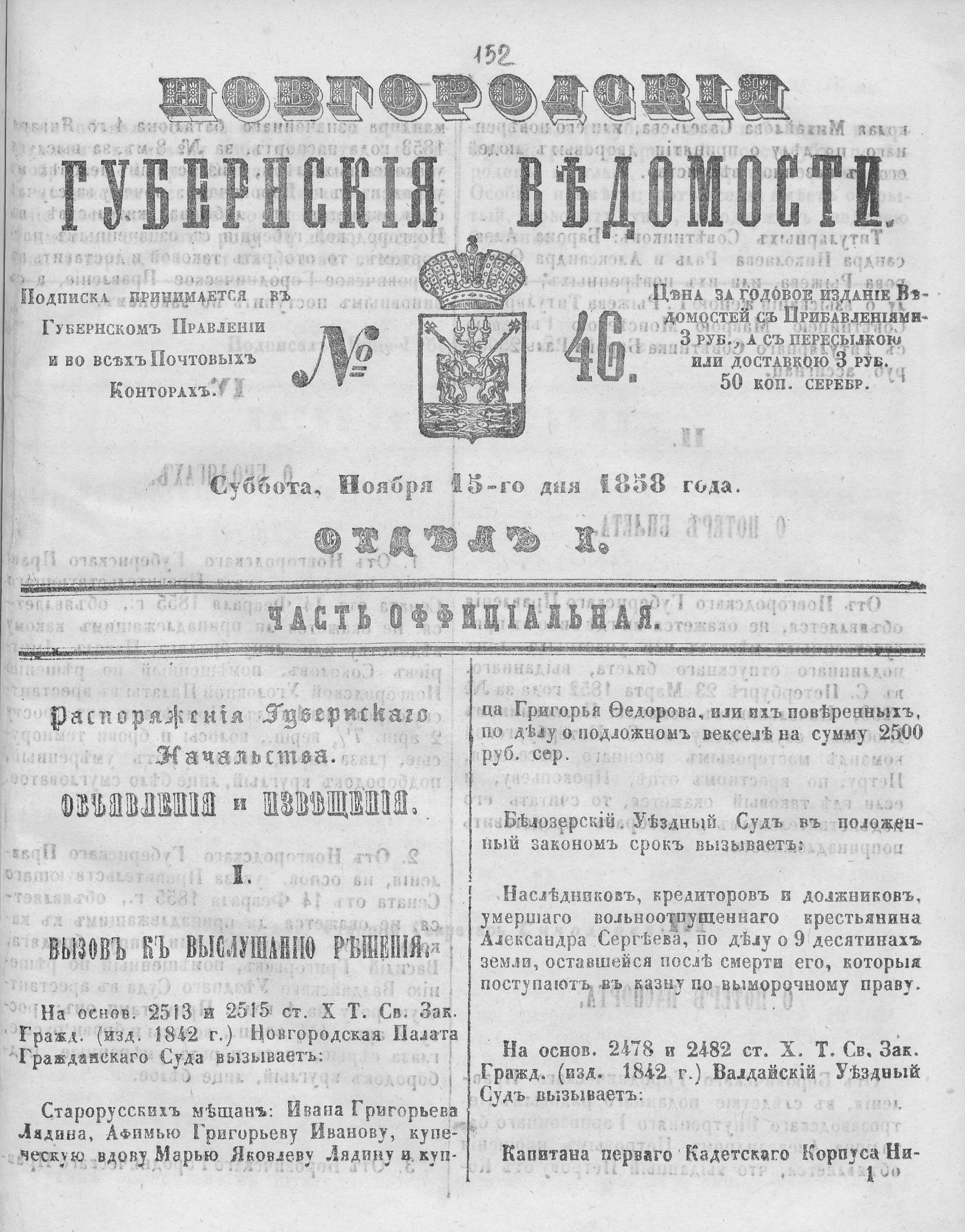 НОВГОРОДСКИЕ ГУБЕРНСКИЕ ВЕДОМОСТИ