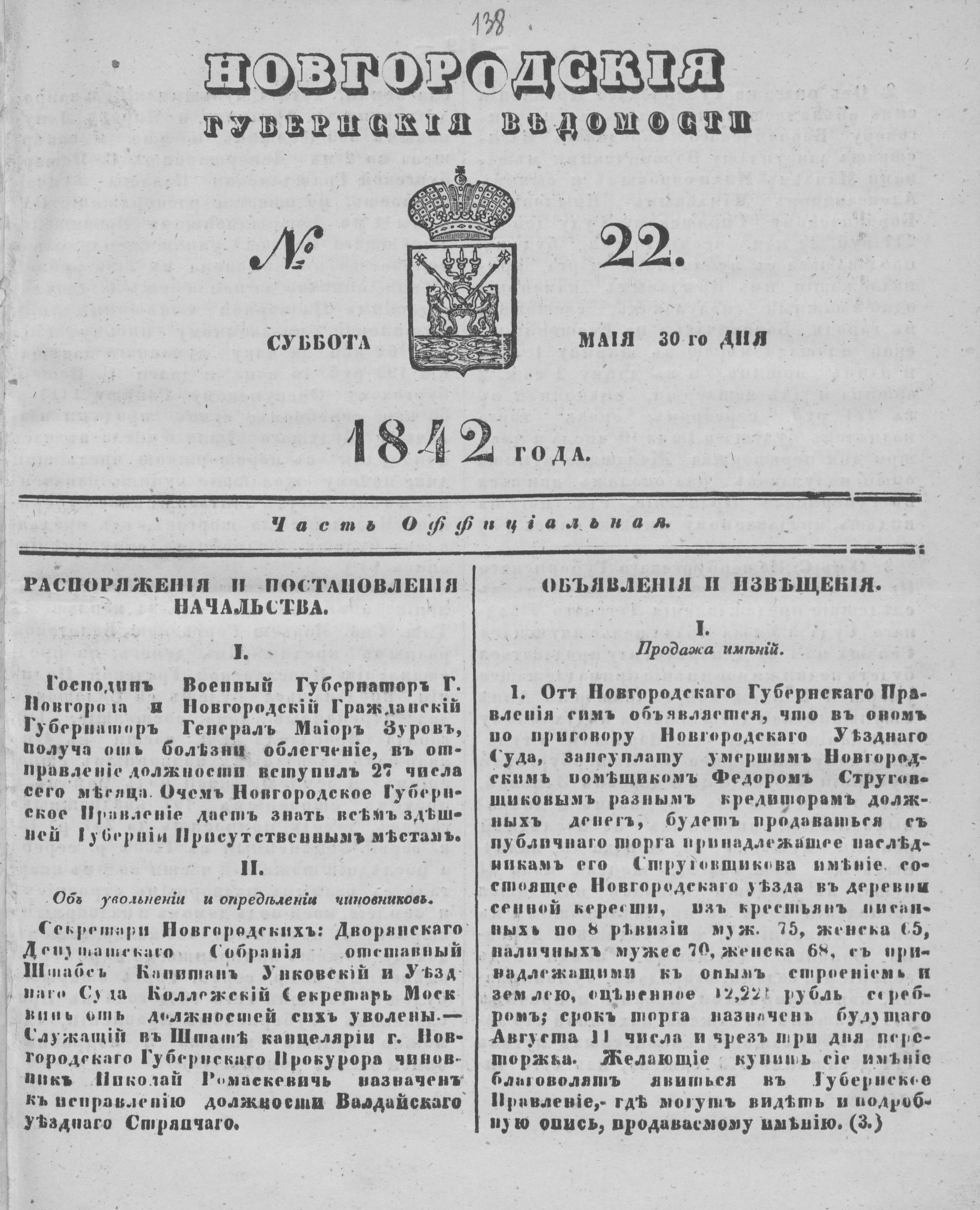 НОВГОРОДСКИЕ ГУБЕРНСКИЕ ВЕДОМОСТИ